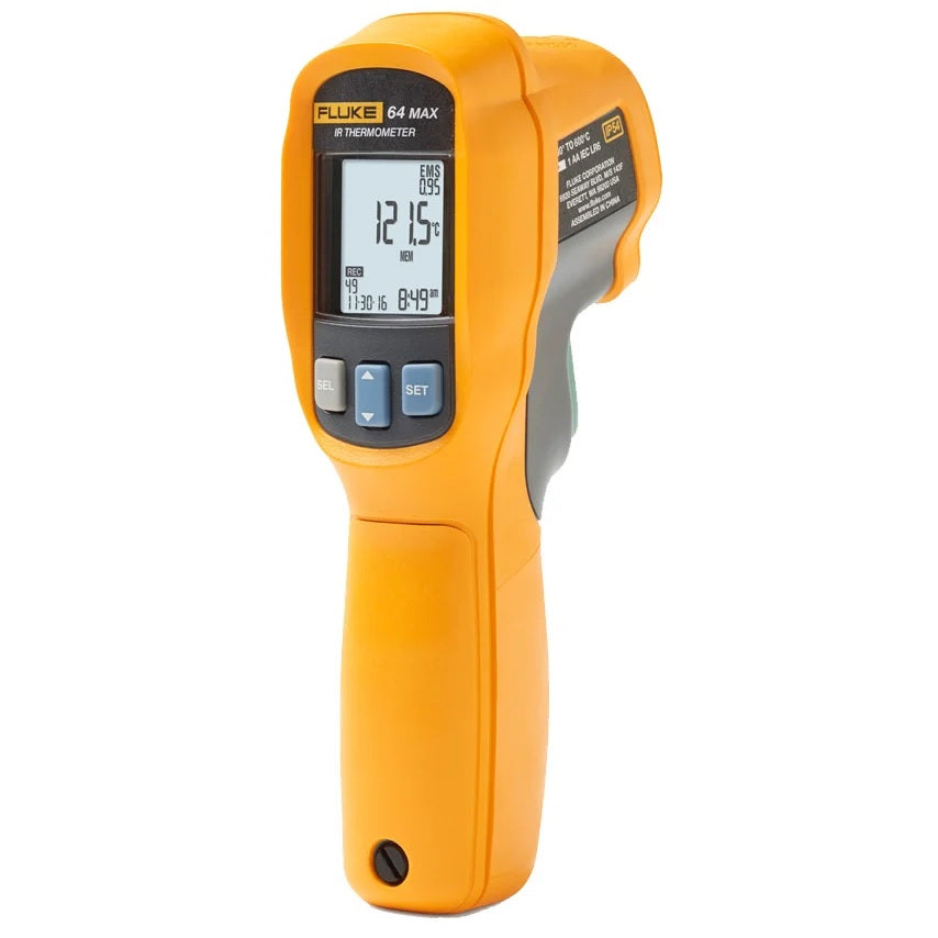 The Fluke 64 MAX thermometer has the precision you need to do your job accurately and will not break the budget. Designed and tested to survive a 3 meter drop, you can count on this lightweight, compact infrared thermometer to work when you need it to work ? even in the harshest environments and when you’re not able to be there.
