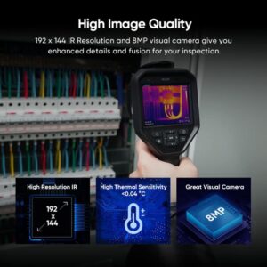 HIKMICRO M11W handheld thermography camera is specially designed for professional inspections of large objects where a wider FOV captures more of the scene in one picture. It’s equipped with a 192 x 144 resolution thermal detector, a 37.5x 27.9 fixed focus lens, and an 8MP resolution visual camera. The high-resolution 3.5-inch touchscreen displays crisp, clear images and streamlines camera operations. Imaging modes include a thermal, visual, picture of the optical and thermal view and fusion of both channels. The M11W quickly identifies potential faults and quantifies the impact with accurate temperature measurements, providing detailed documentation to complete your inspections efficiently.