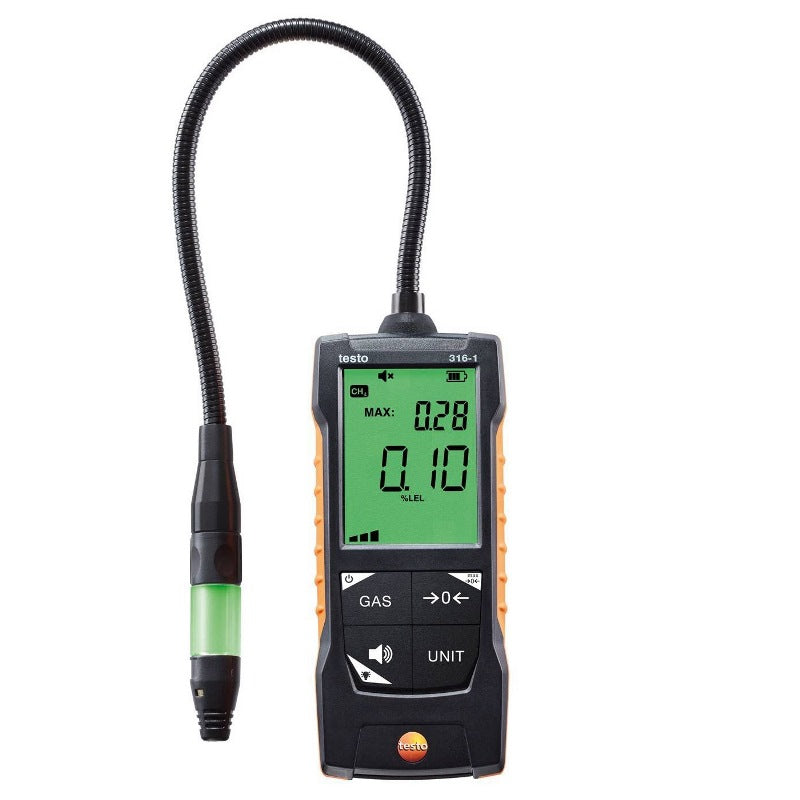 Testo 316-1 gas leak detector with a flexible probe, including batteries.